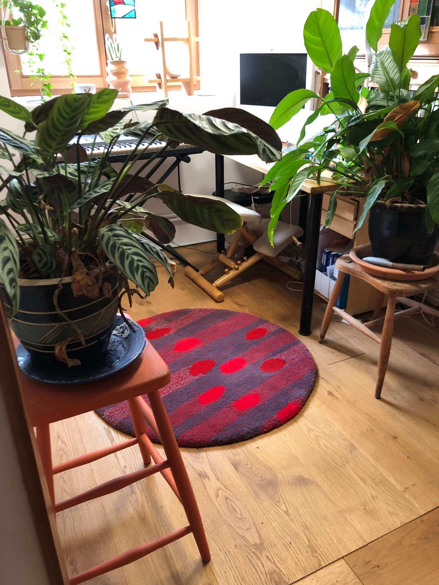 A lot of the time with small spaces you need something that fits it just right, part of the charm of small homes is the quirky little spaces that are odd shapes and sizes. Commissioning your own tufted rug is a way to get the perfect rug in the right size for your home. It’s a simple process and you can choose any shape or size to fit your space. Check out my commissions page for more information.