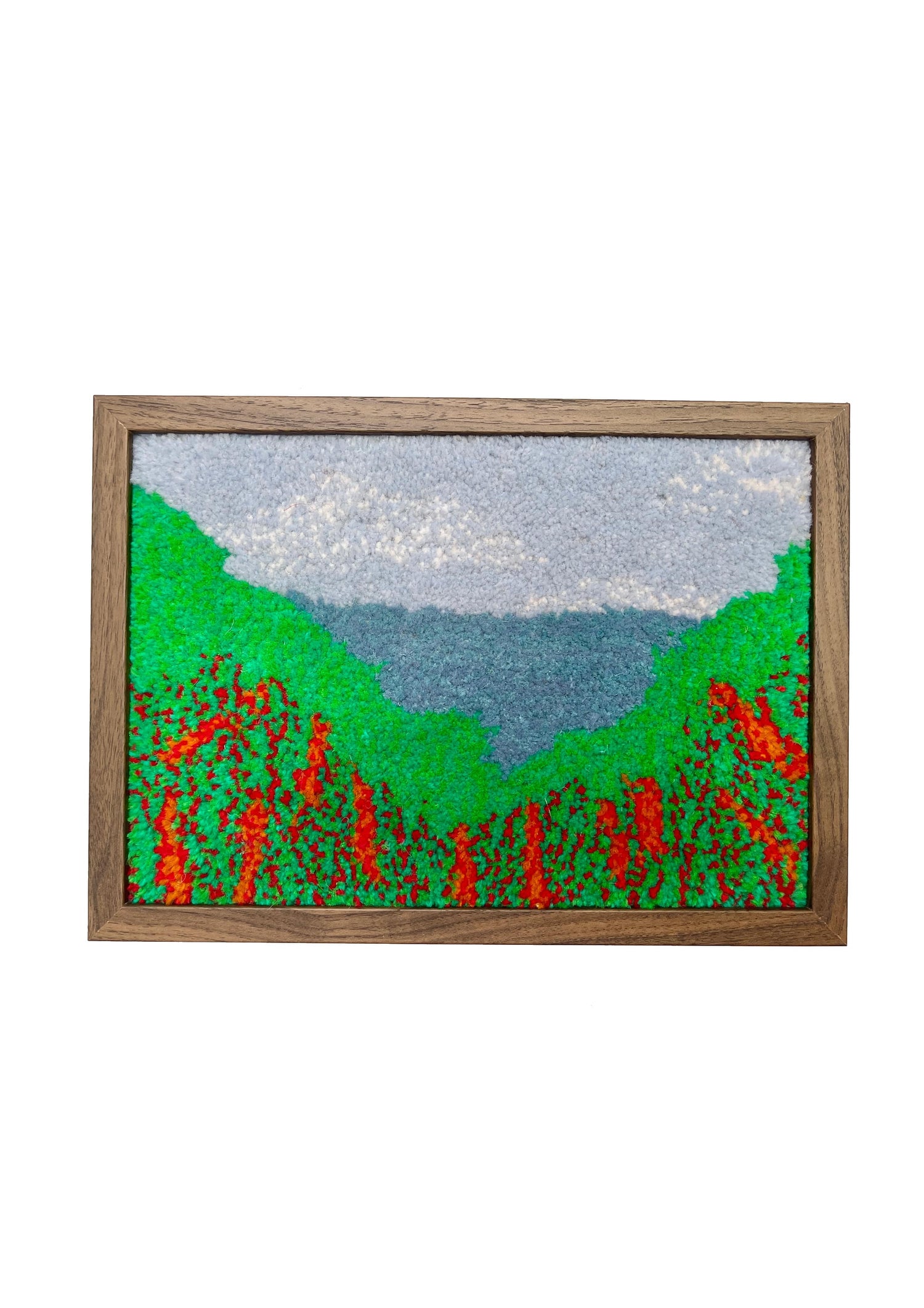 This tufted wall hanging is inspired by the views we saw there, they were breathtaking and atmospheric as we were dodging rain showers by hiding under the cliffs.