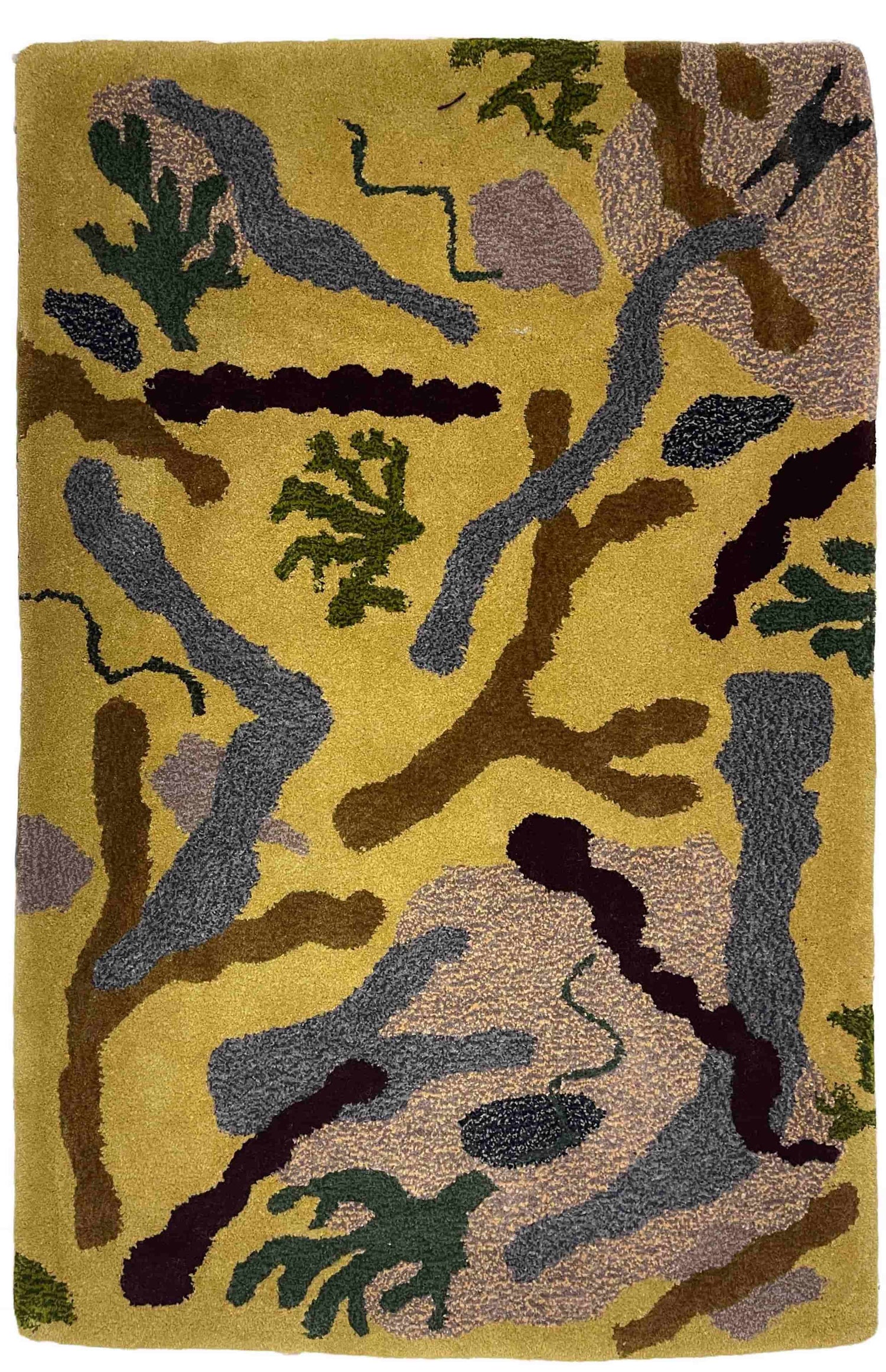 The sea weed rug is inspired by what is left on the beach at low tide after a storm, lots of seaweed, stones and even a mermaids purse. The rocks and stones add depth to the abstracted seaweed shape pattern.