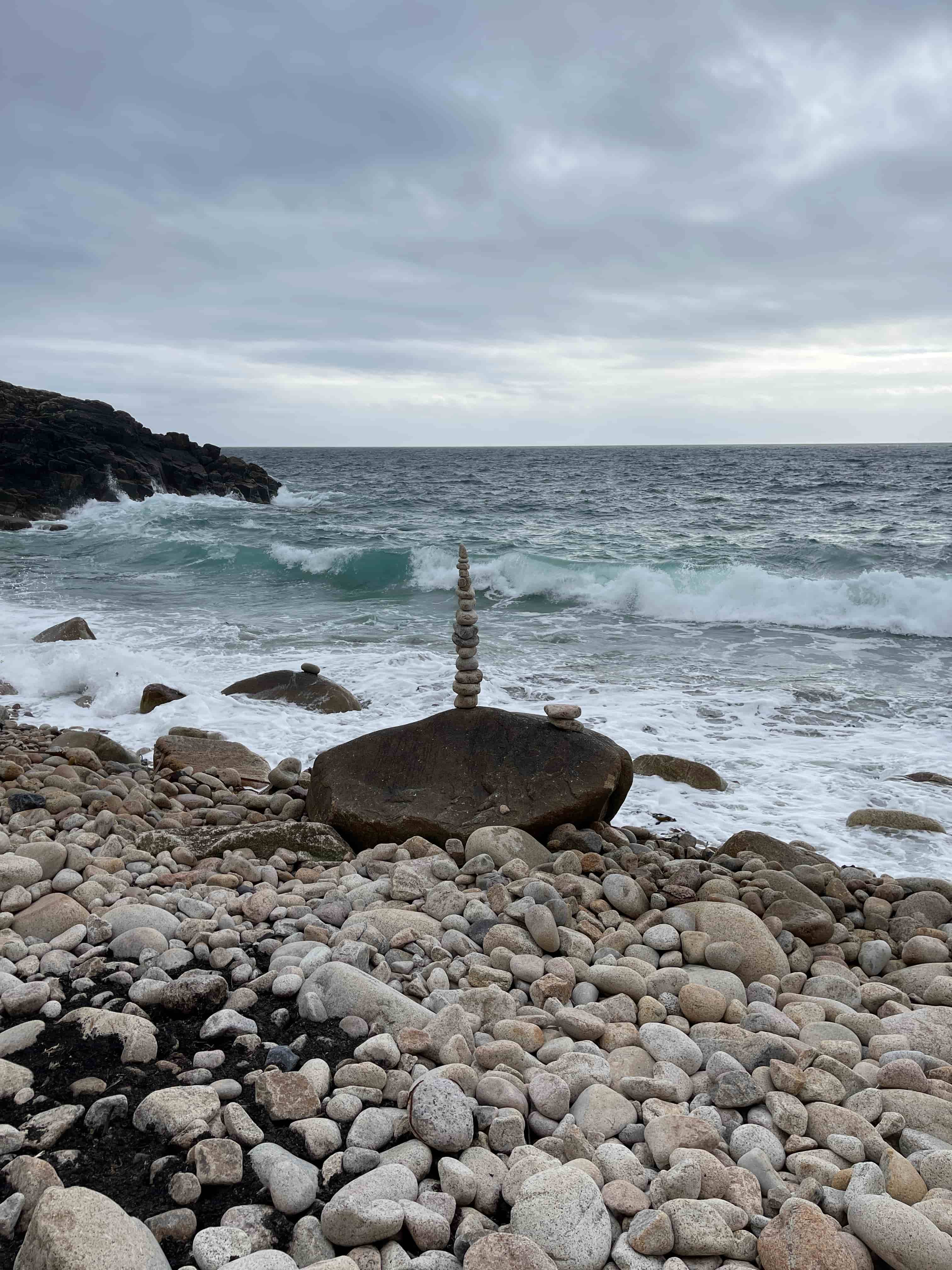 This beach is full of large pebbles and boulders, whenever we visit we see lots of pebble and rock towers, I just love seeing them balancing next to the large waves crashing. There is something so calming but also sinister listening to the huge waves on the pebble pulling them back into the sea.