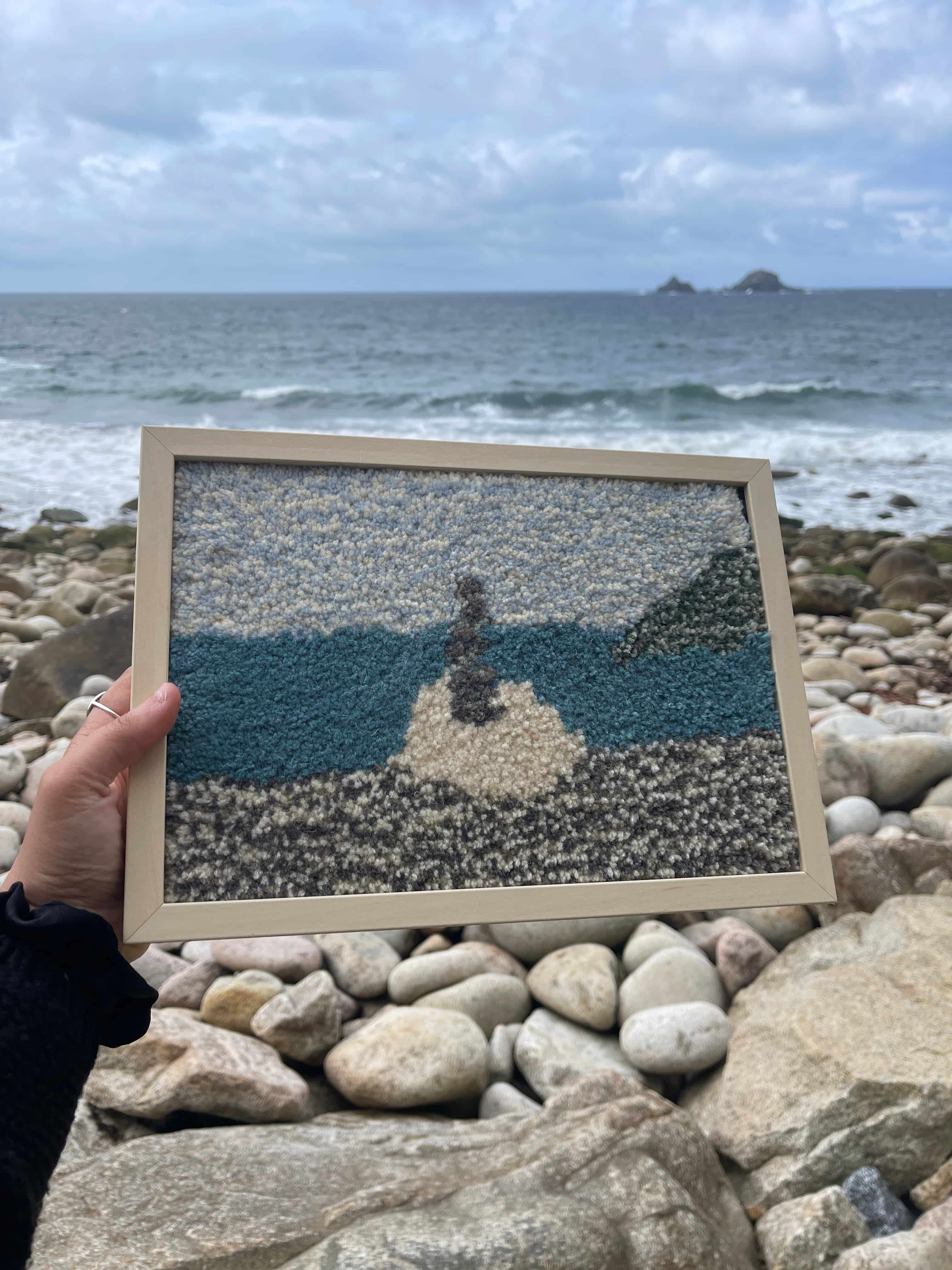 I absolutely love the beach and the seaside, everything about it inspires me and is a big influence in my work. This has ranged from more abstract pieces to tufted beach scenes. All these hand tufted pieces are perfect for everyone who loves the sea side I even have a few tufted seascapes so you can find your favourite beach tufted in a tactile textile piece. Or you can bring the seaside to your home floor with a tufted beach inspired rug.