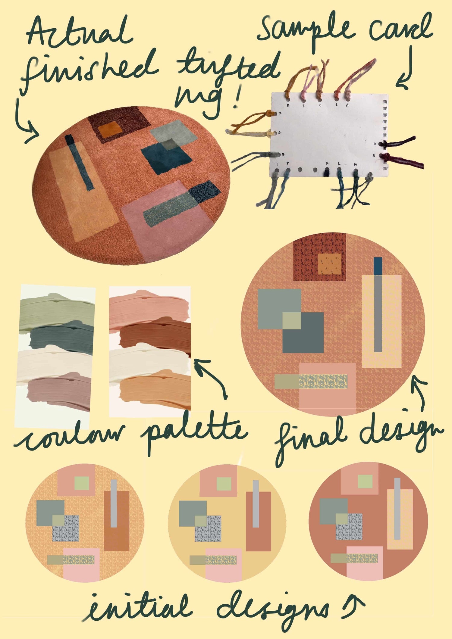 - Have an idea on a colour scheme but not the design for your custom tufted rug? Not to worry a lot of clients come to me with a loose colour scheme and I can come up with lots of different design options to choose from.