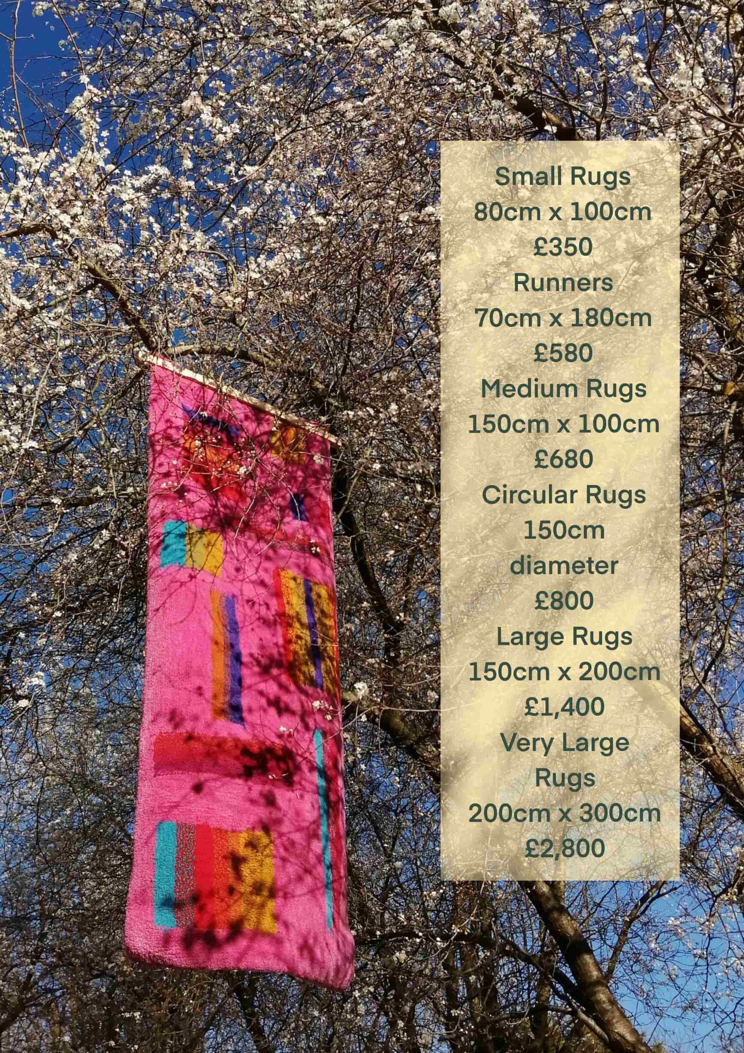 Here's a little guide of what you can expect to pay for a custom Studio Tuft rug.