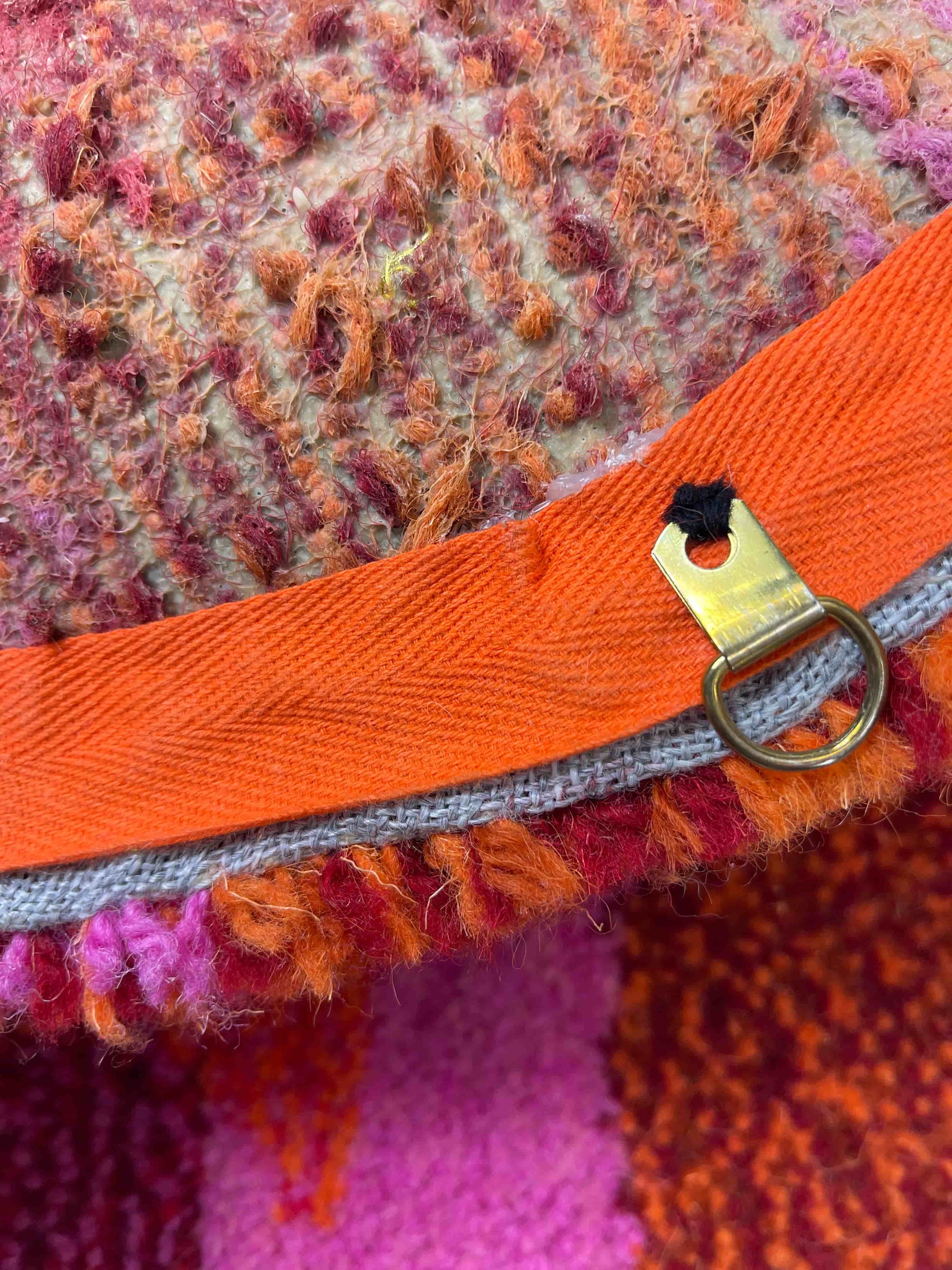 This large circular wall hanging is backed with latex and a Studio Tuft label. They are finished as a rug would be but with a ‘D’ hook is fitted on the back so they can be hung straight on the wall! Larger wall hanging/ rug/ seat pad 45.5cm diameter £100